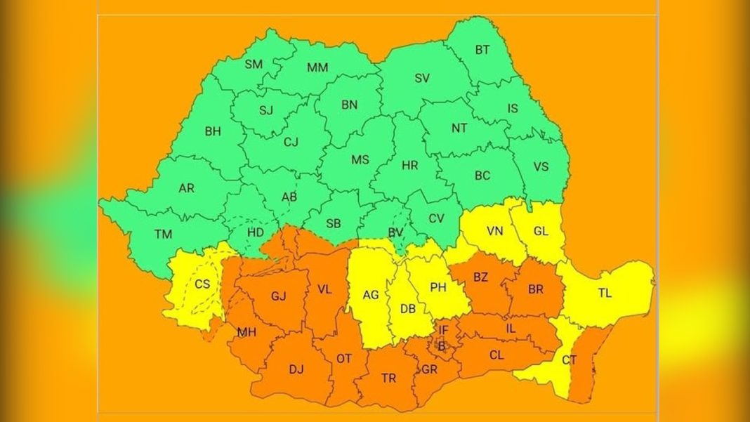 Zone afectate: județele Mehedinți, Dolj, Olt, Vâlcea și Gorj