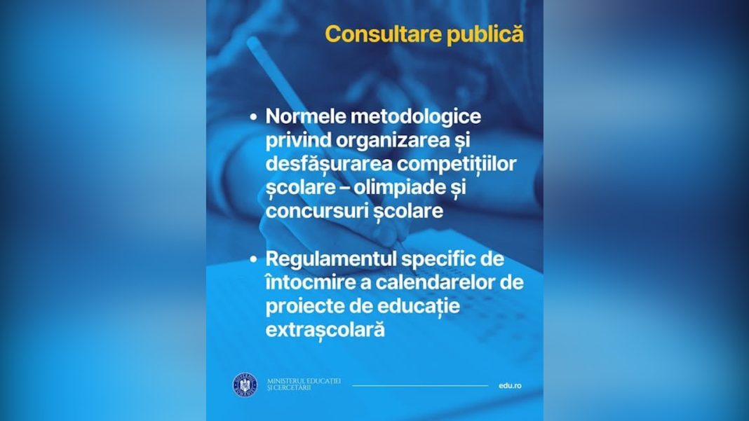 S-a lansat în consultare publică documentele care stabilesc modalitatea de organizare a competițiilor școlare – olimpiade și concursuri școlare – și de întocmire a calendarelor proiectelor de educație extrașcolară.