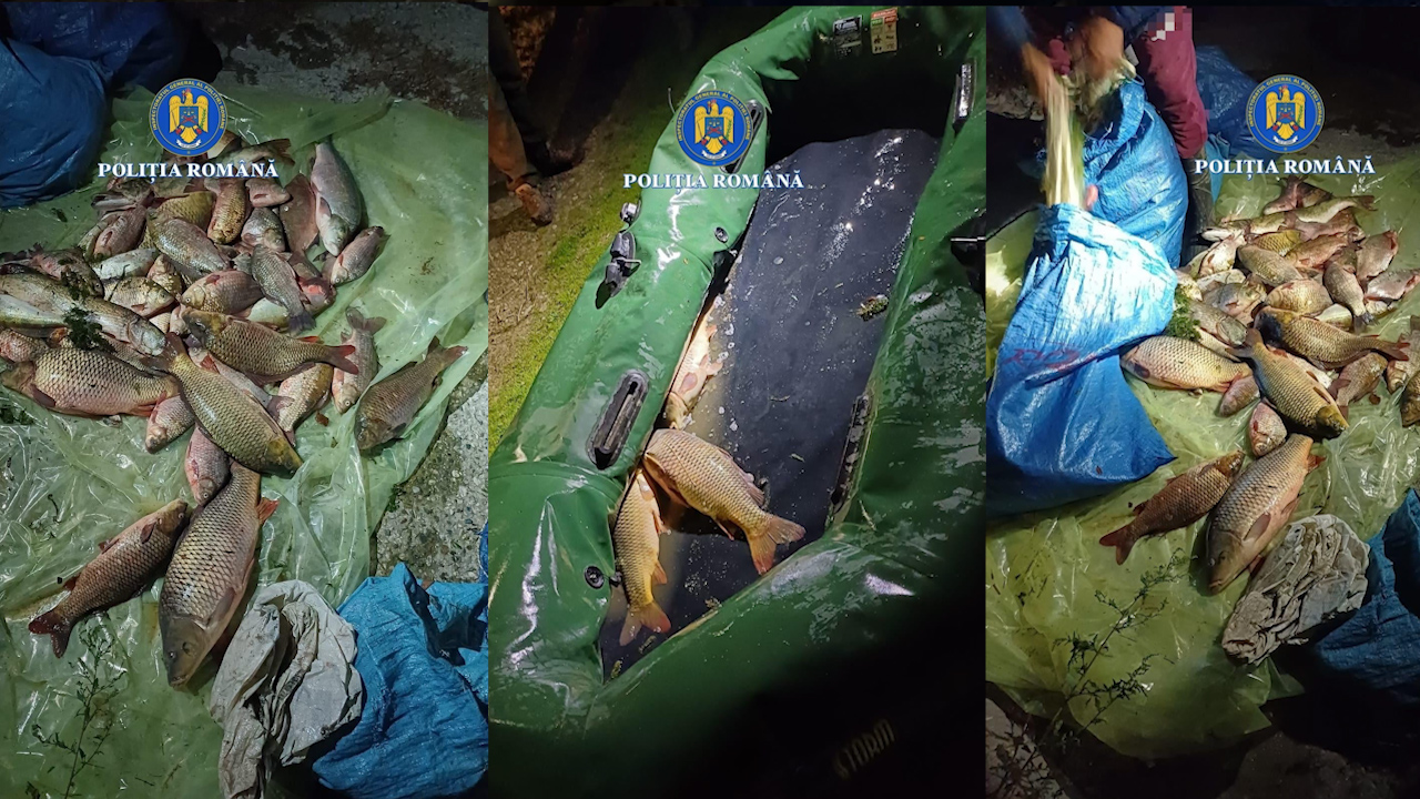 ”În urma controlului efectuat asupra autoturismului, polițiștii au identificat o barcă gonflabilă și trei saci, dintre care doi conțineau diferite unelte de pescuit interzise, iar al treilea era plin cu pește. În total, au fost identificate 14 plase de pescuit, toate interzise de lege, având lungimi cuprinse între 15 și 79 de metri, confecționate din diverse materiale, inclusiv două plase monofilament. De asemenea, polițiștii au descoperit aproximativ 30 kg de pește, din speciile crap, caras, plătică și șalău. Cantitatea de pește a fost ridicată în vederea confiscării și predată unității abilitate, conform legislației în vigoare”.