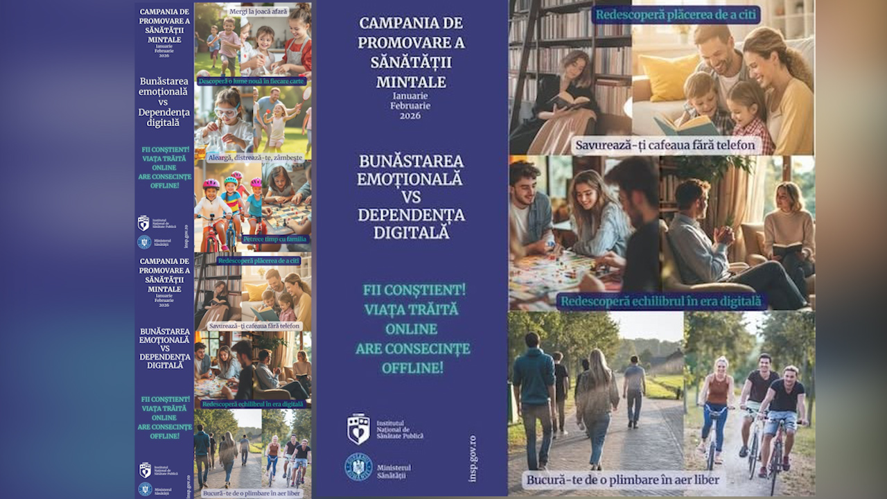 Institutul Național de Sănătate Publică și Direcțiile Județene de Sănătate Publică lansează campania națională de informare, educare și conștientizare dedicată promovării sănătăţii mintale, în perioada ianuarie-februarie 2026, o inițiativă esențială pentru a aborda escaladarea provocărilor de sănătate mintală generate de utilizarea problematică a mediului digital.