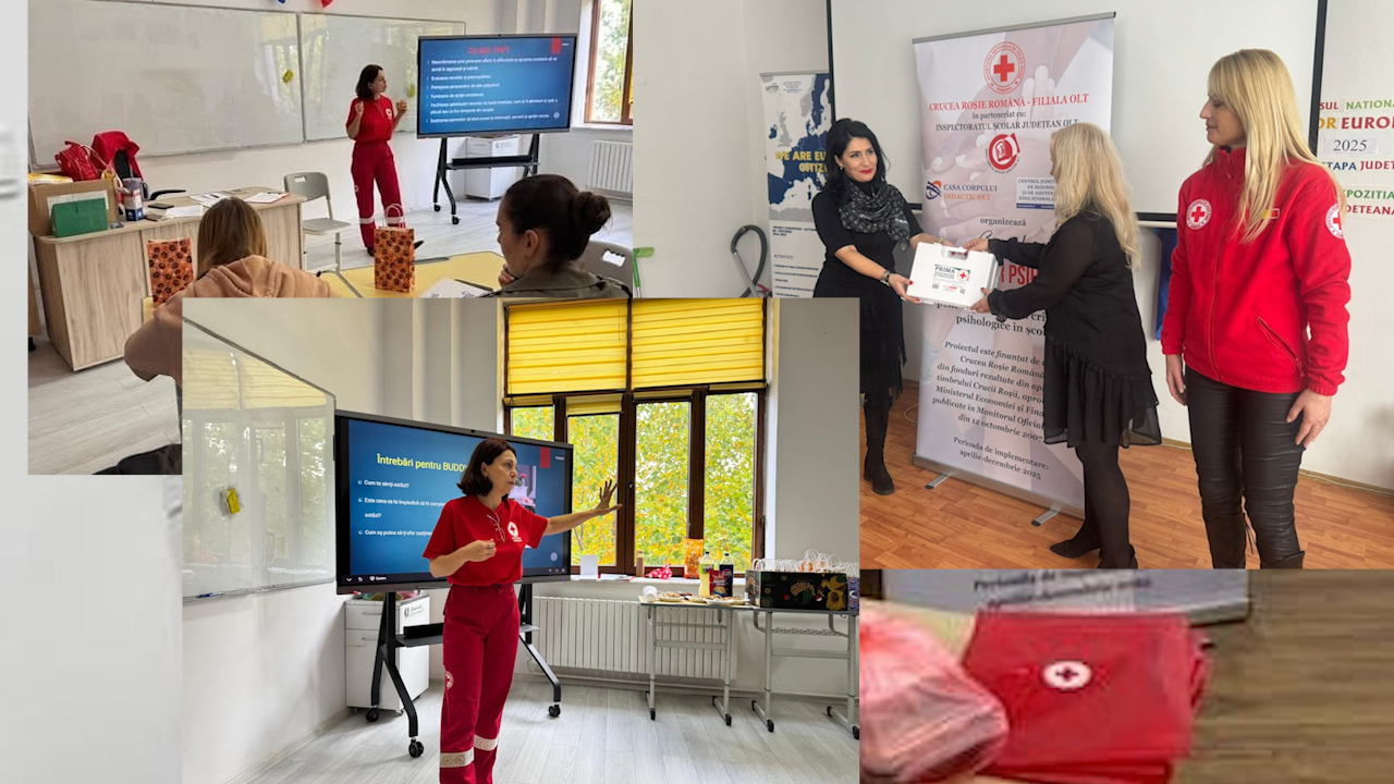 Societatea Națională de Cruce Roșie din România – Filiala Olt anunță încheierea cu succes a proiectului ”Prim ajutor psihologic – Formarea cadrelor didactice pentru gestionarea crizelor psihologice în școli”, derulat în perioada aprilie – decembrie 2025, susținut din fonduri colectate de Crucea Roșie Romana din taxa de timbru.