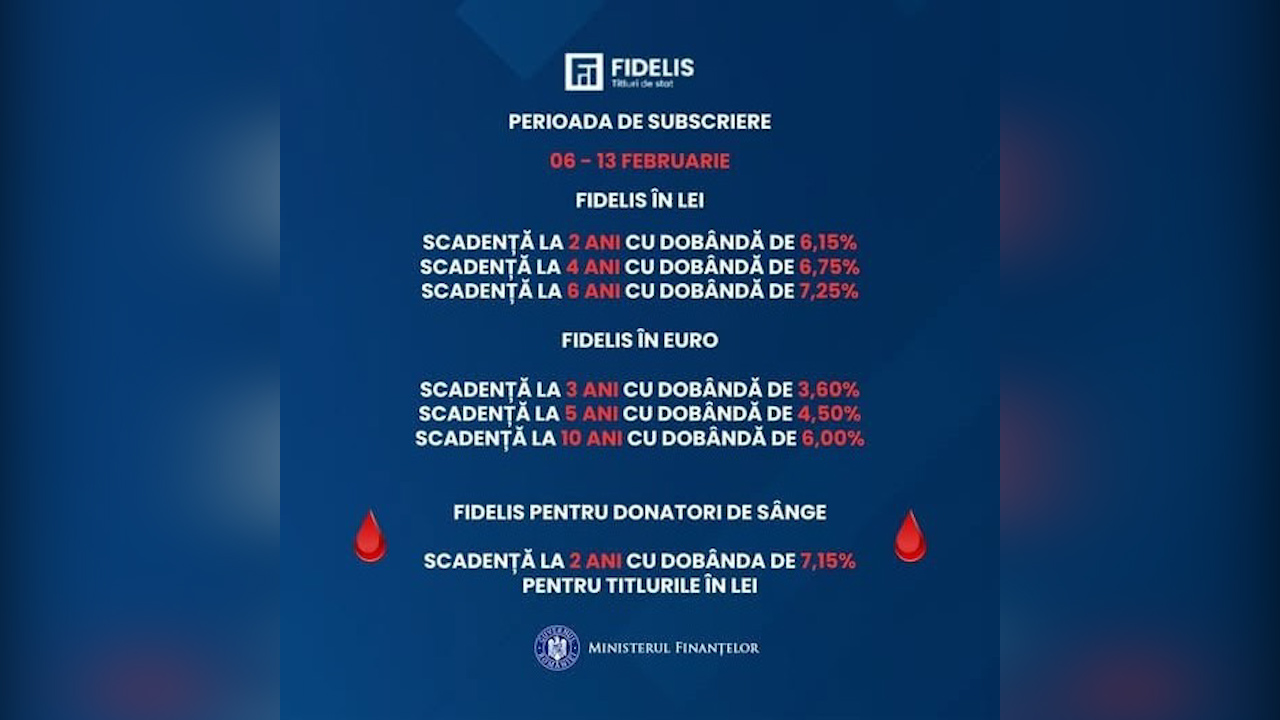 În perioada 06–13 februarie, ai ocazia să îți pui economiile la lucru în condiții sigure și avantajoase, investind în titlurile de stat FIDELIS.