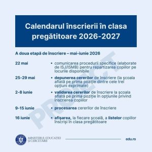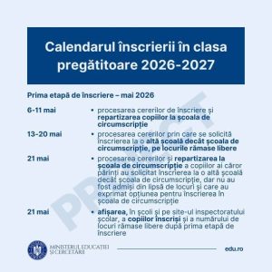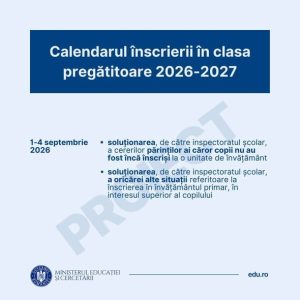 S-a lansat în consultare publică proiectul de calendar pentru înscrierea în clasa pregătitoare în anul școlar 2026 – 2027