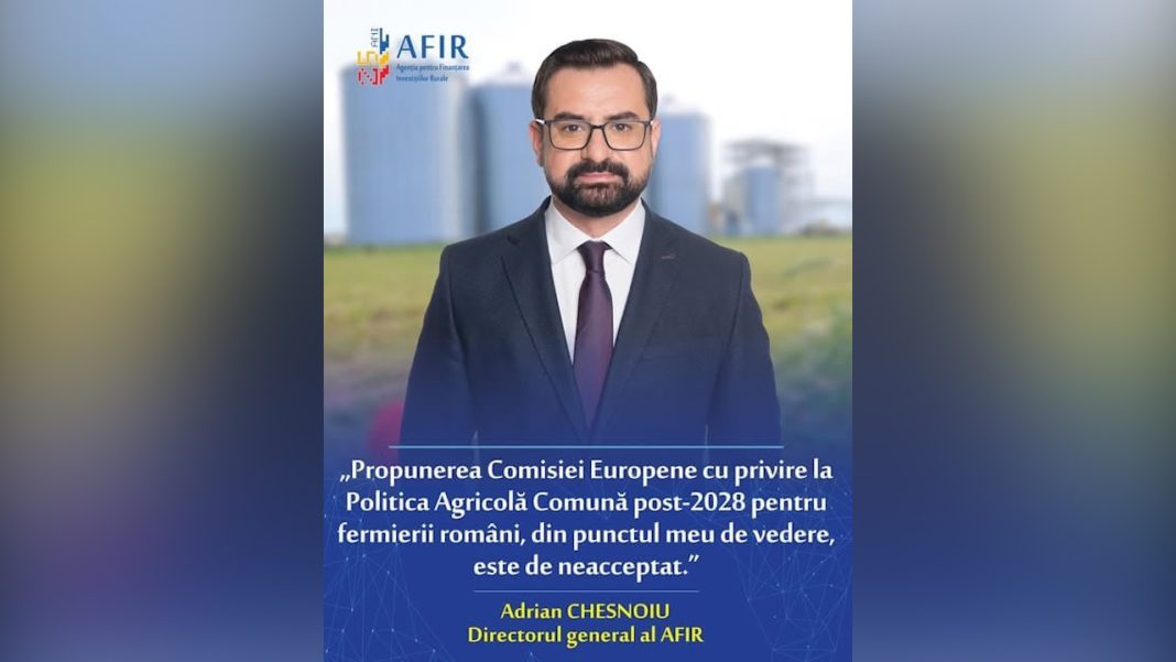 „Agricultura Europei, și implicit agricultura României, este la pas de răscruce. Urmează doi ani dificili pentru ceea ce iubim cu toții – agricultura României.” a declarat Adrian CHESNOIU, directorul general al AFIR. Declaratia acestuia:
