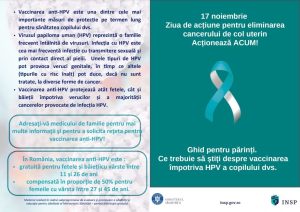 ”INSP continuă să susțină și să lucreze la implementarea și extinderea vaccinării și a programului de screening, precum și dezvoltarea unor servicii de prevenție și depistare precoce accesibile tuturor femeilor, indiferent de regiune sau statut social. Eliminarea cancerului de col uterin este un obiectiv ambițios, dar realizabil, dacă fiecare dintre noi face un pas înainte: părinții prin vaccinarea copiilor, femeile prin participarea la screening, iar profesioniștii din sănătate prin informare corectă, sprijin și implicare activă. Împreună putem construi o generație protejată și un viitor în care cancerul de col uterin nu mai reprezintă o amenințare”.