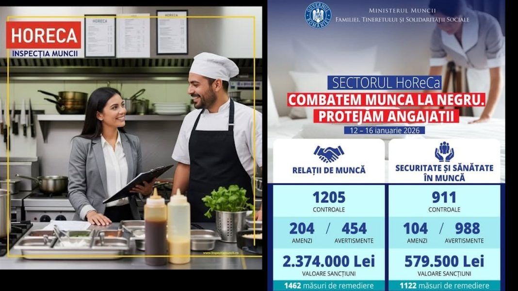 Inspecția Muncii a finalizat Campania Națională pentru identificarea și combaterea muncii nedeclarate și verificarea respectării normelor de securitate și sănătate în muncă (SSM) în sectoarele „Hoteluri și alte facilități de cazare” și „Restaurante și alte activități de servicii de alimentație”. Acțiunea, desfășurată în perioada 12 – 16 ianuarie 2026, a fost motivată de ponderea importantă a acestui sector în economia națională și de riscurile generate de caracterul sezonier al activităților, care poate duce la neglijarea prevederilor legale.
