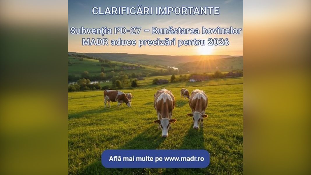 Context: Cu privire la informațiile apărute recent în spațiul public referitoare la o presupusă reducere a sprijinului acordat fermierilor prin intervenția PD-27 – Creșterea nivelului de bunăstare a bovinelor prin pășunat extensiv pe pajiști, începând cu anul 2026, Ministerul Agriculturii face următoarele precizări: