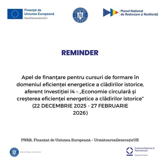 𝐑𝐄𝐌𝐈𝐍𝐃𝐄𝐑 | 𝐀𝐩𝐞𝐥 𝐝𝐞 𝐟𝐢𝐧𝐚𝐧𝐭̦𝐚𝐫𝐞 𝐏𝐍𝐑𝐑 – 𝐜𝐮𝐫𝐬𝐮𝐫𝐢 𝐝𝐞 𝐟𝐨𝐫𝐦𝐚𝐫𝐞 𝐢̂𝐧 𝐞𝐟𝐢𝐜𝐢𝐞𝐧𝐭̦𝐚 𝐞𝐧𝐞𝐫𝐠𝐞𝐭𝐢𝐜𝐚̆ 𝐚 𝐜𝐥𝐚̆𝐝𝐢𝐫𝐢𝐥𝐨𝐫 𝐢𝐬𝐭𝐨𝐫𝐢𝐜𝐞