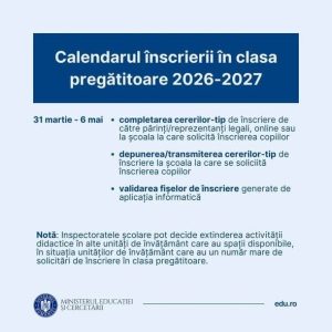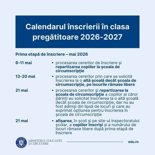 *În 12 martie fiecare unitate de învățământ va comunica pe canalele proprii circumscripțiile școlare, precum și numărul de clase pregătitoare pentru anul școlar 2026-2027.