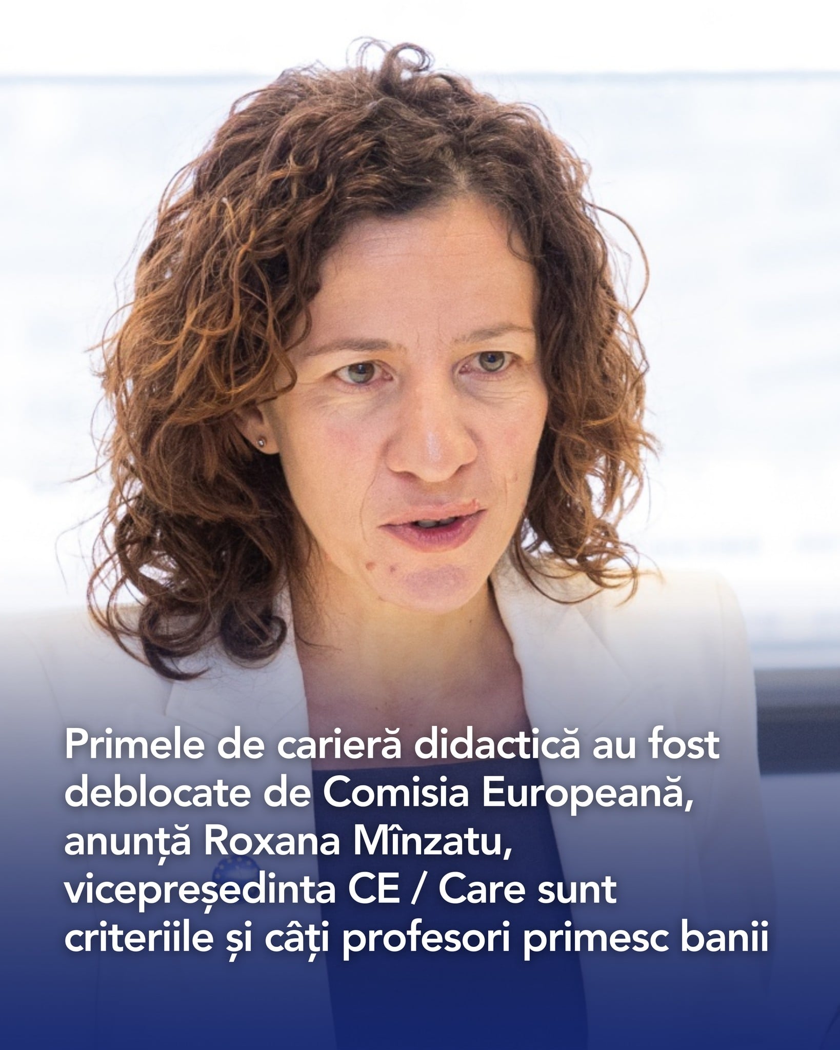 Vicepreședinta executivă a Comisiei Europene, Roxana Mînzatu, a anunțat că 220.000 de profesioniști din educație vor primi câte 1.500 de lei din fonduri europene, sub formă de voucher. Anunțul a fost făcut pe Facebook și vine după aprobarea unei realocări de 65 de milioane de euro în cadrul Programului Educație și Ocupare (PEO), finanțat prin Fondul Social European Plus.