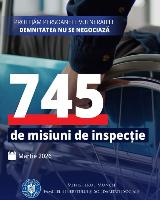 În luna martie 2026, inspectorii sociali din cadrul Agenției Naționale pentru Plăți și Inspecție Socială, împreună cu cei ai agențiilor județene pentru plăți și inspecție socială și ai agenției teritoriale a Municipiului București, au desfășurat 745 de misiuni de inspecție.