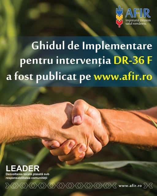 Ghidul și manualul de implementare a intervenției DR-36 F „Sprijin pentru gestionarea, monitorizarea și evaluarea strategiei de dezvoltare locală, precum și animarea acesteia, inclusiv facilitarea schimburilor între părțile interesate” sunt disponibile pe site-ul www.afir.ro